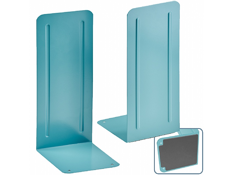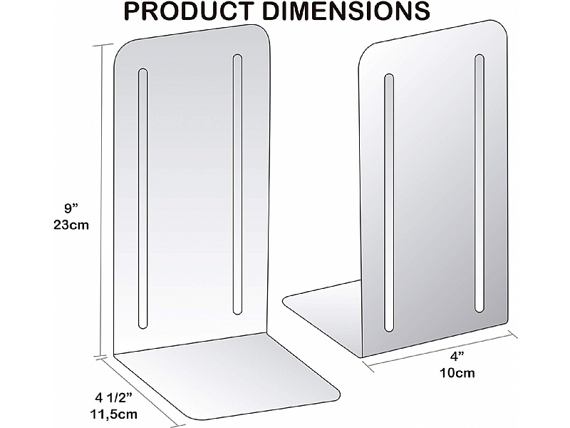 Made of Sturdy metal with modern and basic design, this effective Acrimet Bookends Jumbo fulfills its function to hold up and organize books. It also has curved corners and rounded edges. In addition to a soft base (won´t scratch the furniture). With colors from classic to modern, creates a beautiful and pleasant look, while organizing books, magazines, catalogs. Ideal for offices, libraries, schools or at home. Product Dimensions: 4´´ X 4 1/2´´ X 9´´ Packing with a pair.