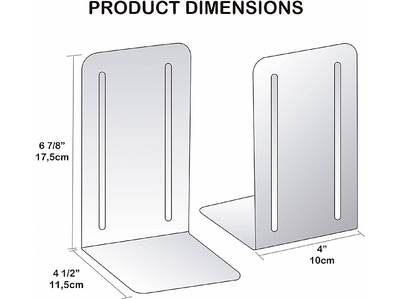 Sujetalibros Acrimet és elaborado en metal resistente con un diseño moderno simple y básico.Tiene esquinas curvas y bordes redondeados, además permite quitar 1 artículo sin molestar a los demás. Puedes usarlo en escritorio, armarios o estantes. Ideal para hogar, oficinas, bibliotecas, escuelas. Perfecto para organizar libros, revistas, catálogos, en el hogar, escritório, en todo lugar. Mantiene los libros organizados evitando que se resbalen. Dimensiones del Producto: 10cm (ancho) X 11,5cm (largo) X 17cm (alto). El paquete contiene un juego de 2.
